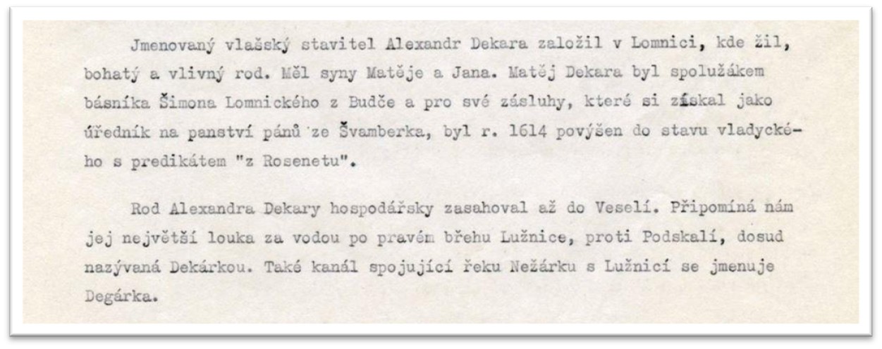 Podíváme-li se detailněji na železniční mapu, zjistíme, že kilometrovník 36.113 je přesně v místě mostu přes Degárku. Tušíme, že zde něco nehraje. Je to název řeky. Díváme-li se na staré mapy, nenajdeme název Degárka. Naopak, najdeme zde názvy jako Rameno Nežárky, Tok Nežárky, Nežárka, nebo dokonce Mlýnský náhon (Degárka byla tehdy chápána jako náhradní přívod vody na veselský mlýn při nedostatku vody v Lužnici). Z toho vyplývá, že název řeky nemusí být směrodatný a Nežárkou je zde chápáno rameno Nežárky - Degárka. Již jen na okraj. Název Degárka je sice starobylý, ale spíše lidový název ramene Nežárky, kterých bylo ve Veselí a Mezimostí několik. Historik František Kuna jej spojuje s blízkou Dekarovou loukou.